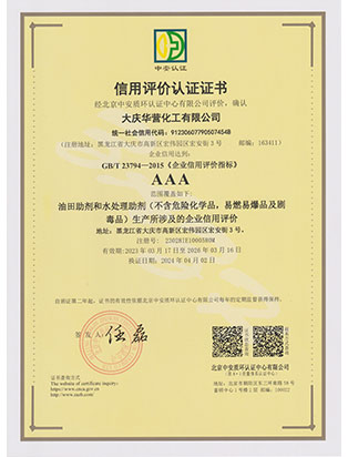 大慶華營(yíng)化工有限公司成立于2006年7月10日,注冊(cè)資金3300萬(wàn)元,公司類型為有限責(zé)任公司。位于大慶高新技術(shù)產(chǎn)業(yè)開(kāi)發(fā)區(qū)宏偉園區(qū),是一家集油田助劑產(chǎn)品的研發(fā)、生產(chǎn)、銷售和技術(shù)服務(wù)為一體的現(xiàn)代化高新技術(shù)企業(yè)。公司注重科技創(chuàng)新,公司擁有18項(xiàng)自主知識(shí)產(chǎn)權(quán)。企業(yè)承擔(dān)過(guò)國(guó)家火炬計(jì)劃重點(diǎn)項(xiàng)目、國(guó)家科技型中小企業(yè)創(chuàng)新項(xiàng)目等,2011年被科技部火炬高新技術(shù)產(chǎn)業(yè)開(kāi)發(fā)中心評(píng)為國(guó)家火炬計(jì)劃重點(diǎn)高新技術(shù)企業(yè)。公司十余種產(chǎn)品獲得中國(guó)石油天然氣集團(tuán)公司產(chǎn)品質(zhì)量認(rèn)可證書(shū),其中粘穩(wěn)型驅(qū)油劑獲國(guó)家火炬計(jì)劃重點(diǎn)項(xiàng)目證書(shū)。公司憑借多年對(duì)大慶油田及周邊油田地質(zhì)情況的研究,可針對(duì)各油田地層特點(diǎn)調(diào)整產(chǎn)品的配方,更好地發(fā)揮各類油田助劑的性能。